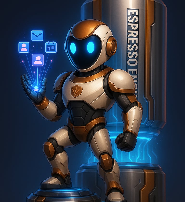 The Espresso Engine™ is a powerful automation reactor that BrewBot taps into to power your workflows. It’s a visual and functional metaphor representing: