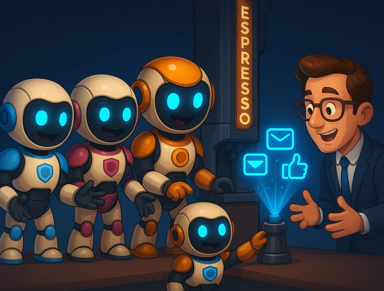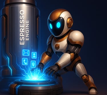 BrewBot™ is our flagship assistant — a character-driven system powered by the Espresso Engine™ that helps you capture leads, follow up automatically, and keep your operations organized without adding more tools to your stack.