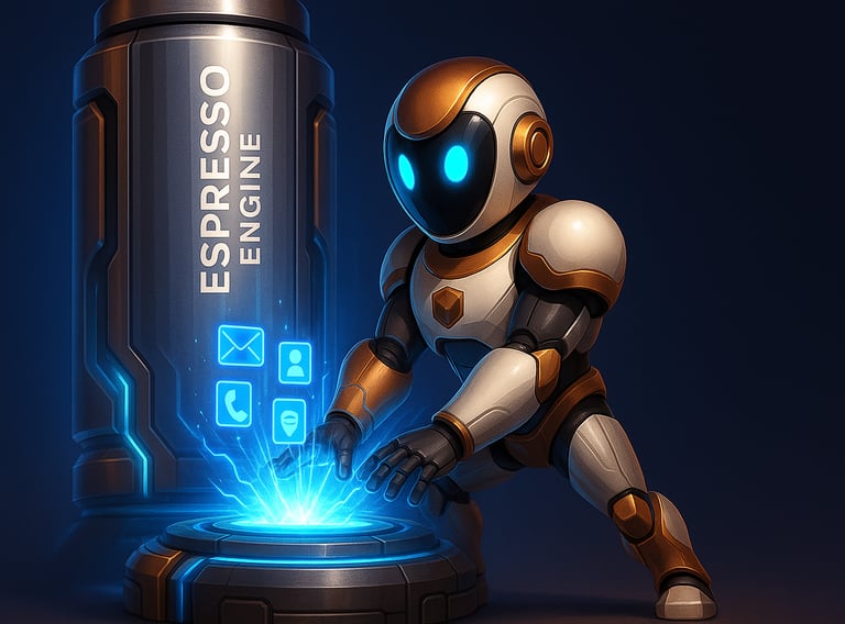 The Espresso Engine™ is a powerful automation reactor that BrewBot taps into to power your workflows. It’s a visual and functional metaphor representing: